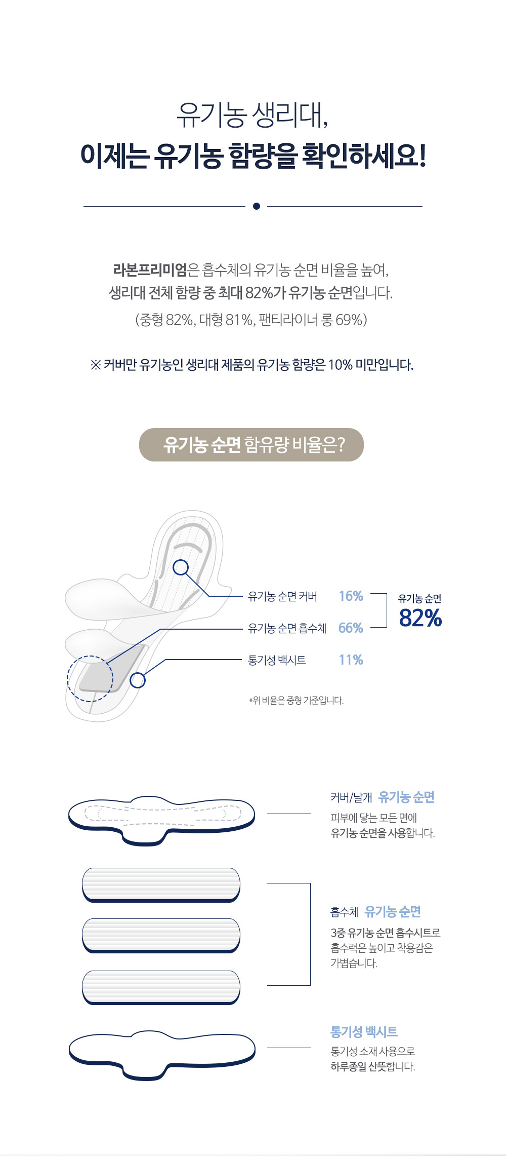 라본 프리미엄 유기농 함량 : 80~82% 프리미엄 생리대