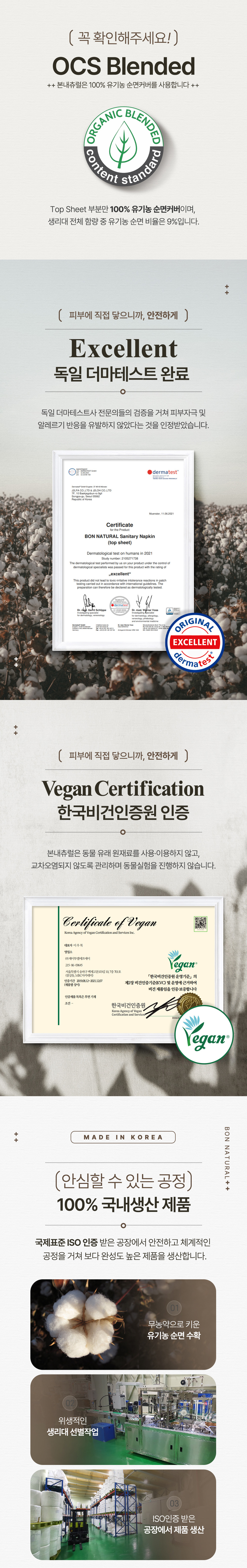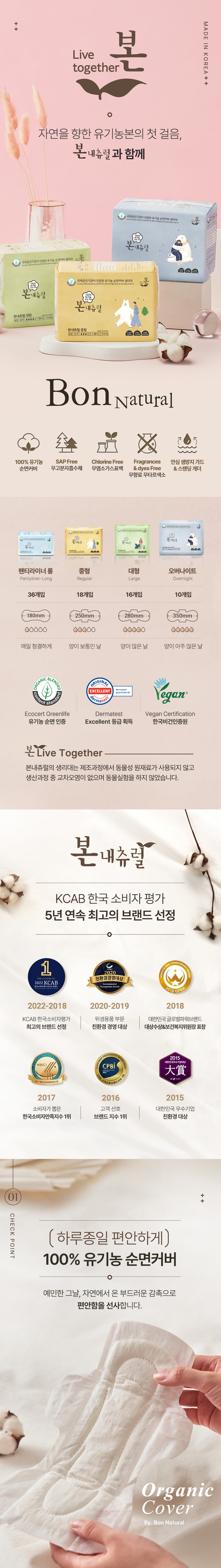 본 내츄럴 유기농 함량 : 8~9% 일반형 생리대