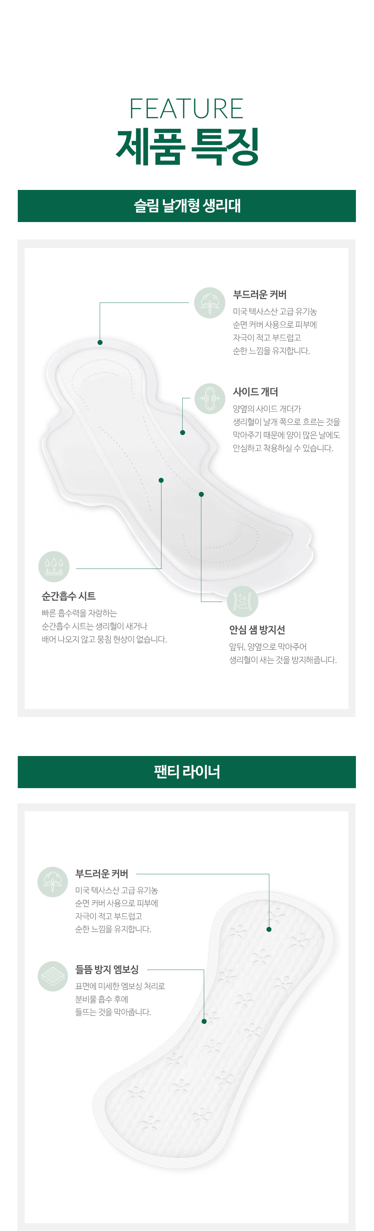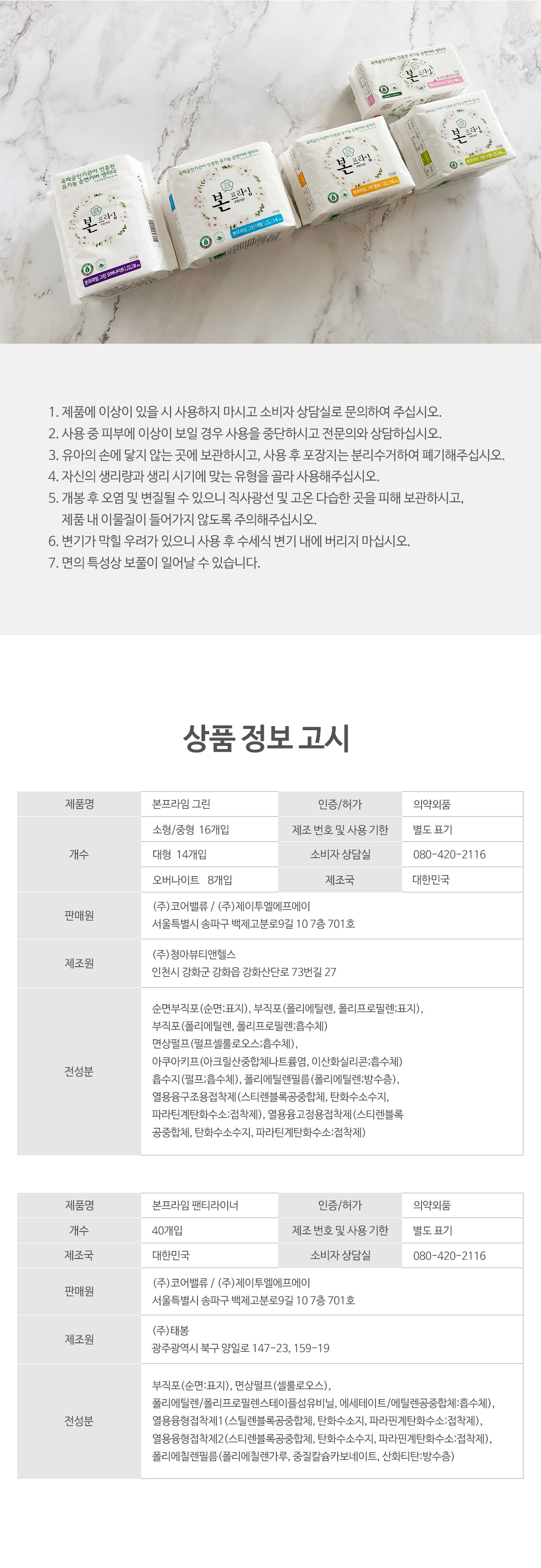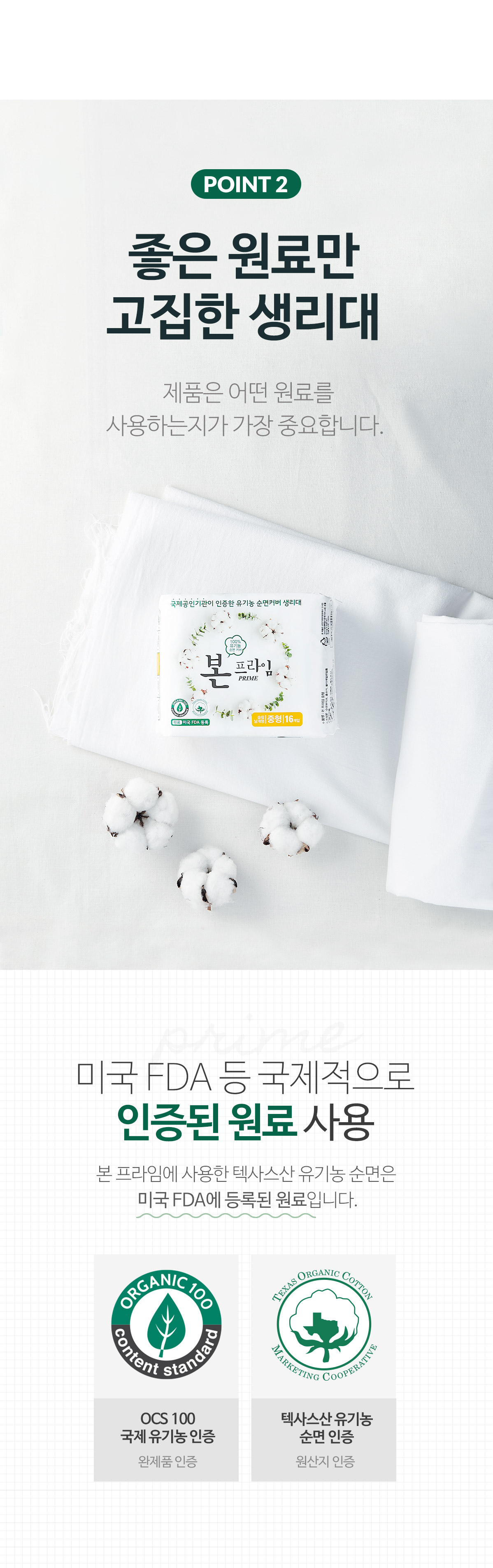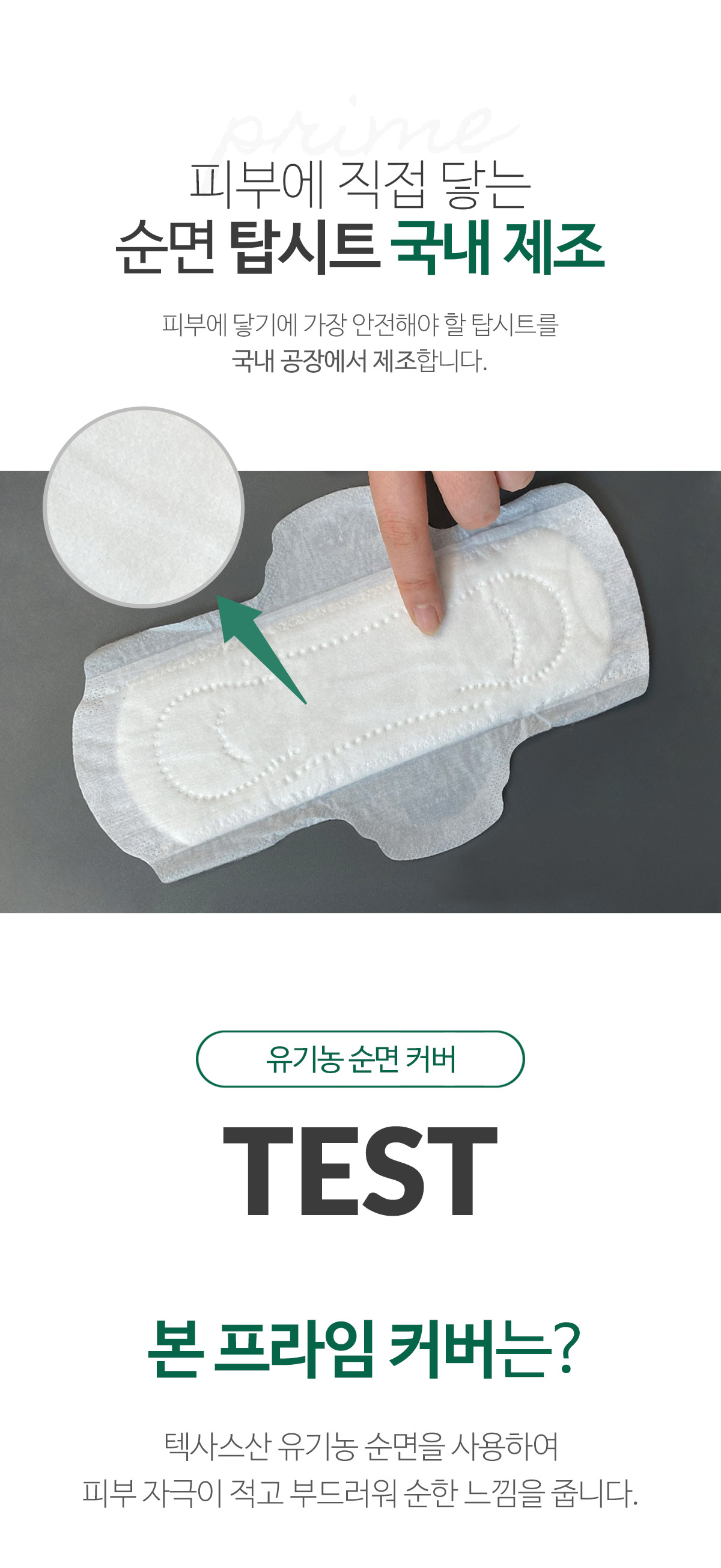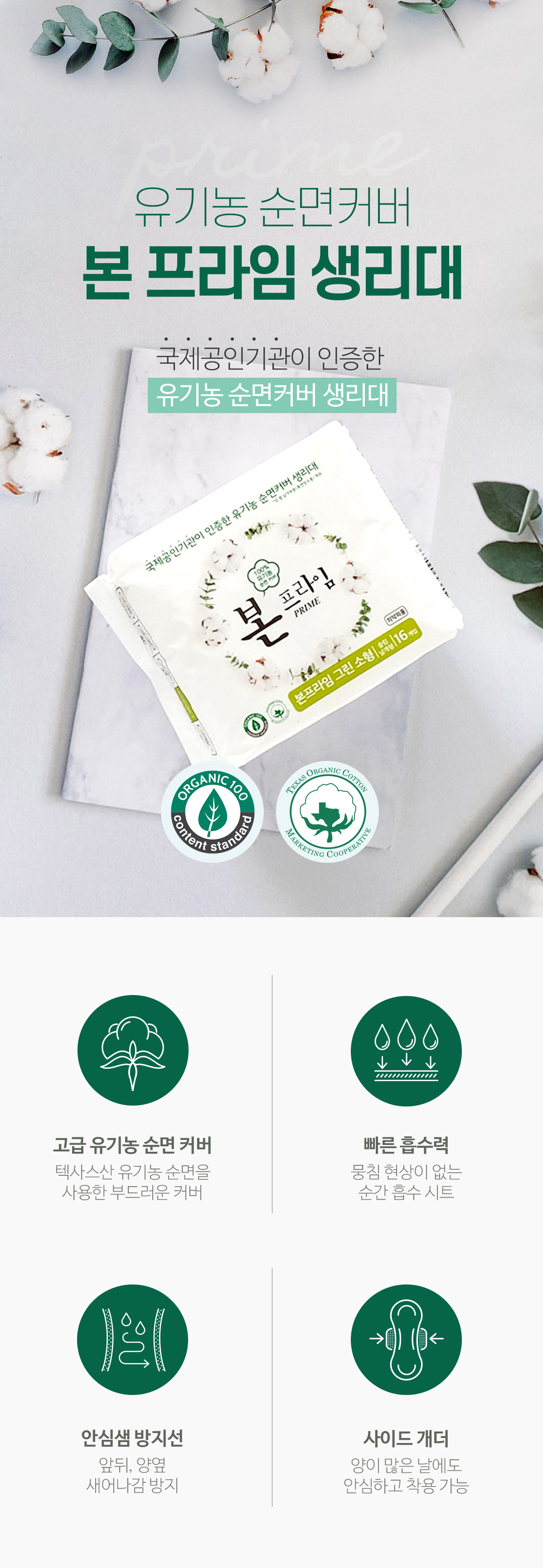 본 프라임 유기농 함량 : 8~9% 일반형 생리대