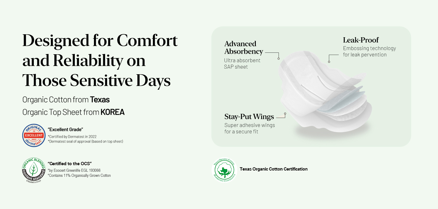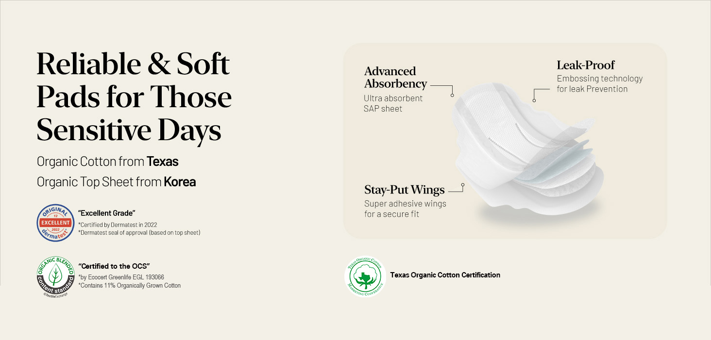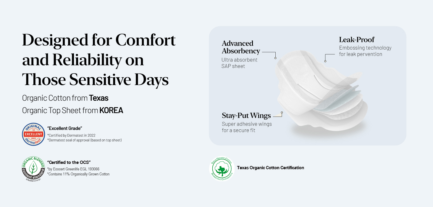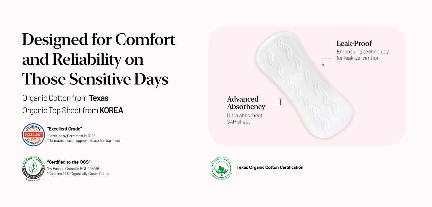 OCBON 유기농 함량 : 15~17% 고급형 생리대